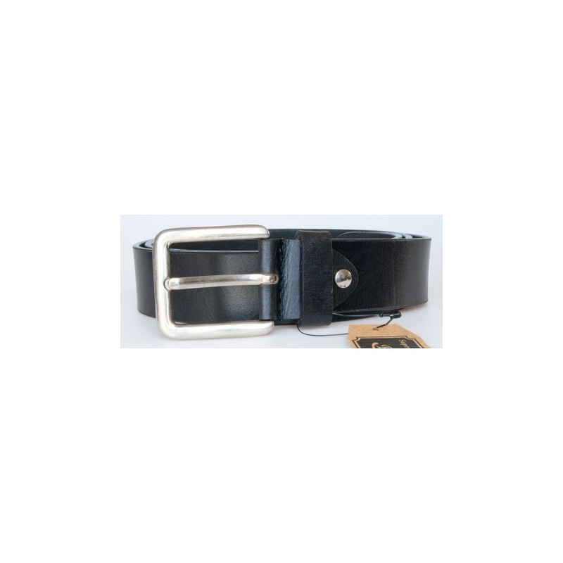 Pánský černý kožený opasek s přezkou se stříbrnou patinou, šířka 38 mm, délka...