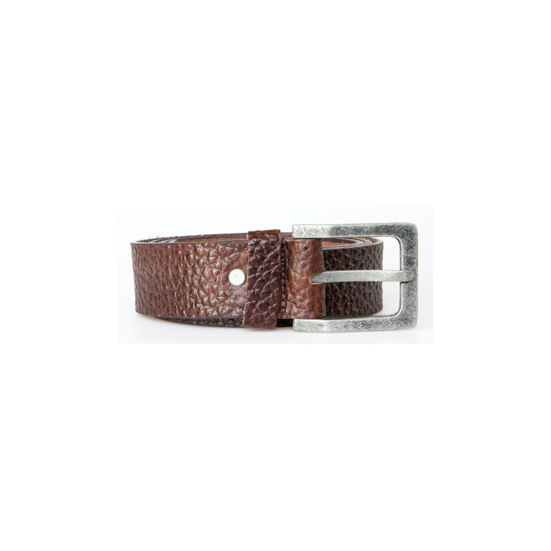 Kožený hnědý opasek 105 cm dlouhý z pevné silné kůže s reliéfní strukturou 38 mm široký