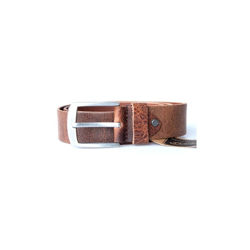Hnědý kožený opasek Bullburry ze silné matně hnědé kůže, šířka 38 mm, délka...