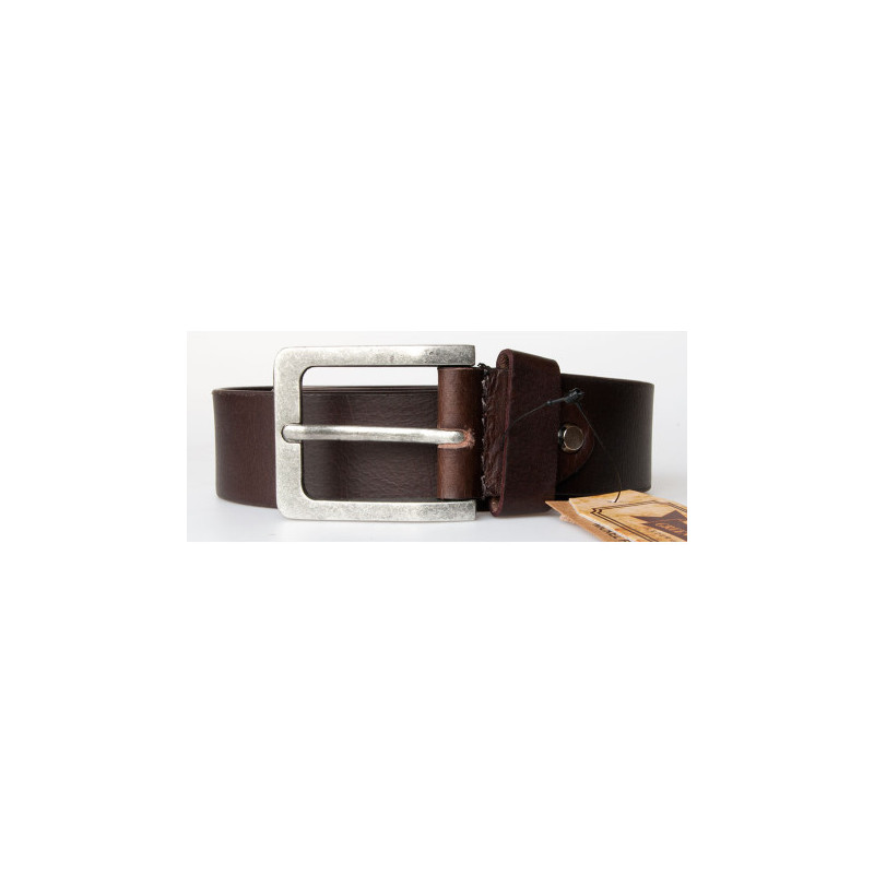 Hnědý kožený opasek ze silné matné pevné kůže, šířka 38 mm, délka 120 cm