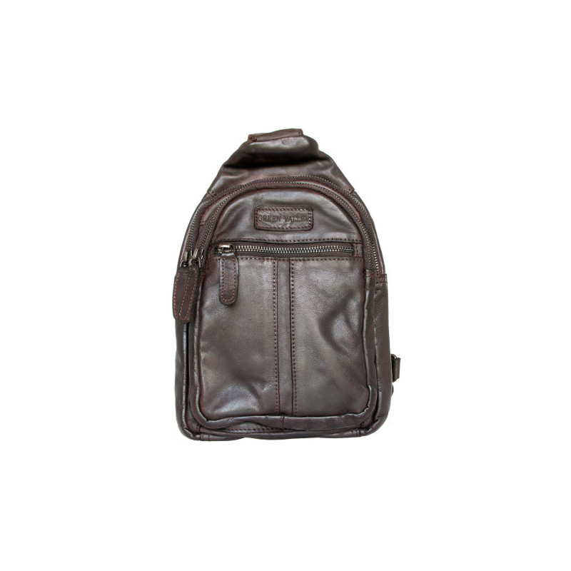 Kožený baťůžek na nošení přes rameno Green Valley z měkké kůže s látkovou podšívkou. Baťůžek je dole široký 18 cm, nahoře 13 cm. 29 cm vysoký od zdola po začátek upínky popruhu. Plný bude 8- 15 cm hluboký. Poutka na řemen přes rameno má na obě strany (na pověšení jak nalevo, tak napravo).