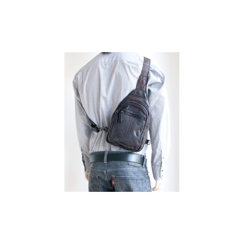 Netradiční kožený baťůžek Pedro na nošení přes rameno z pevné kůže s látkovou...