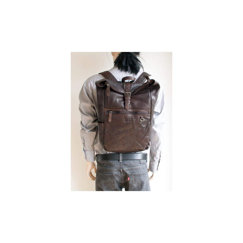 Velký tmavě hnědý batoh z lehké (celý váží asi 900 gramů) prané pravé hovězí...