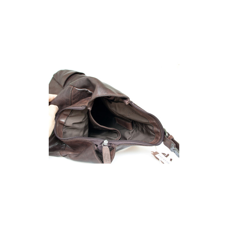 Kožený baťůžek na nošení přes rameno Green Valley z měkké kůže s látkovou...