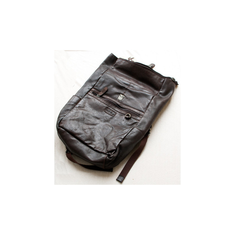 Velký tmavě hnědý batoh z lehké (celý váží asi 900 gramů) prané pravé hovězí...