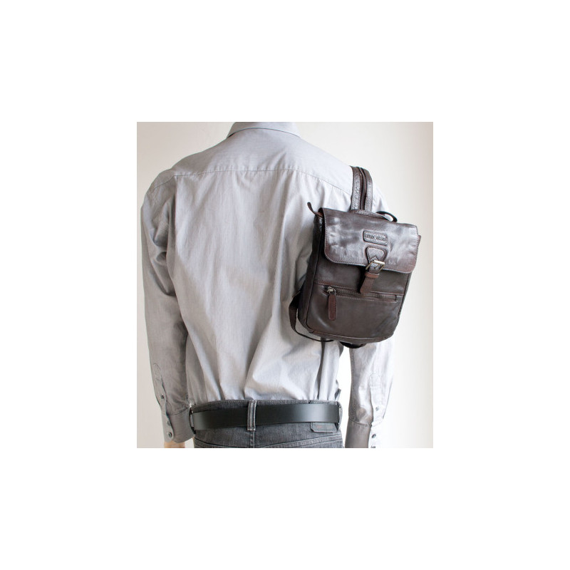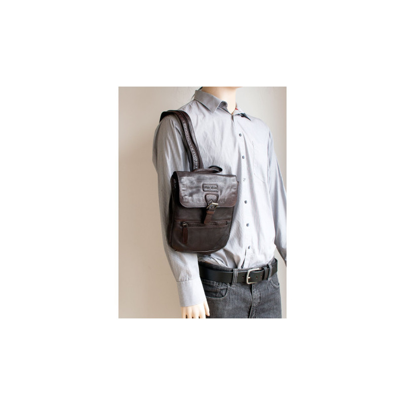 Netradiční kožený baťůžek Pedro na nošení přes rameno z pevné kůže s látkovou...