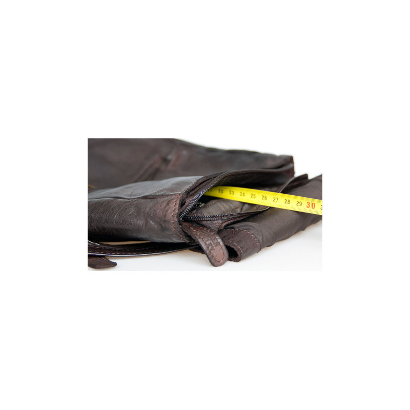 Velký tmavě hnědý batoh z lehké (celý váží asi 900 gramů) prané pravé hovězí...