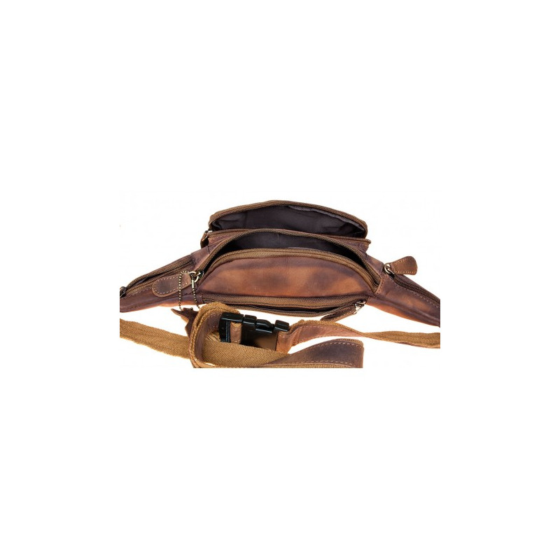 Kožená ledvinka Kabana z pevné kůže s pěti kapsami s látkovou podšívkou....