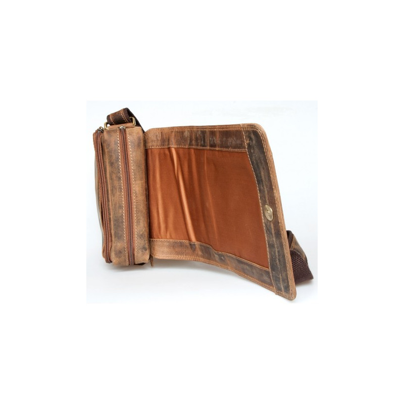 Menší pánská taška Green Valley z prané světle hnědé hovězí kůže s popruhem...