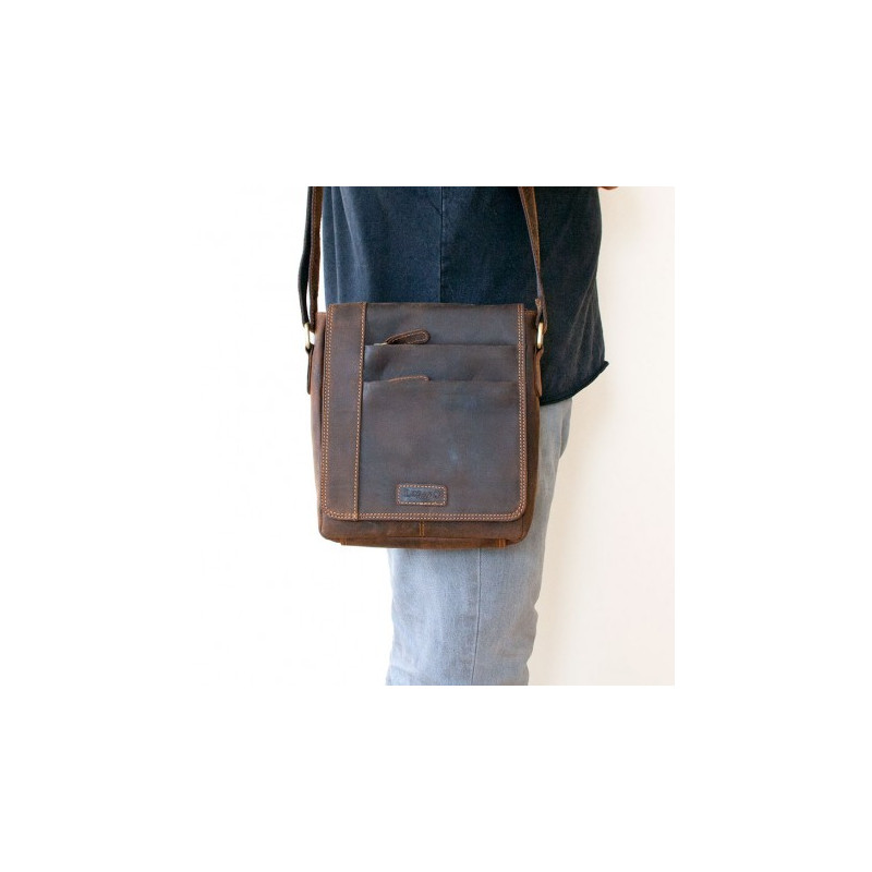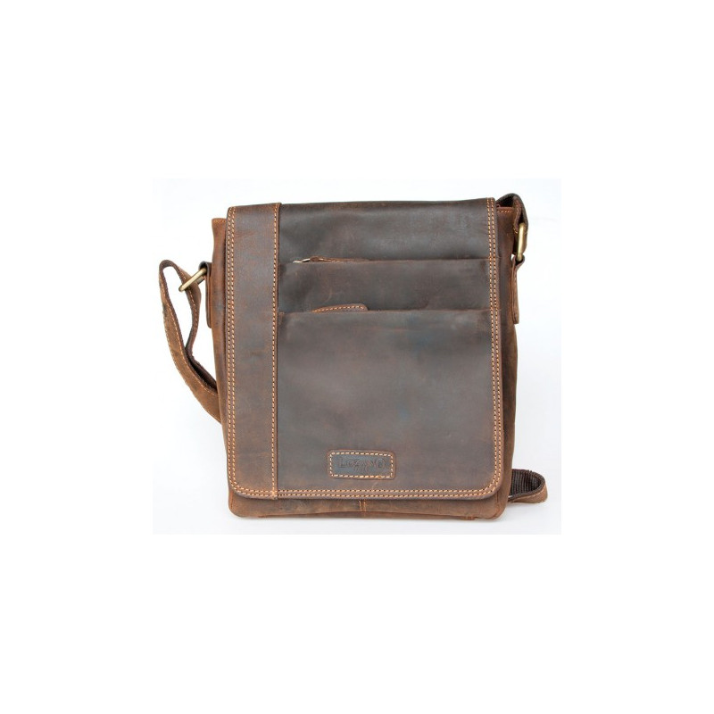 O trochu větší, než střední pánská taška Lozano z pevné kůže s popruhem přes rameno. Rozměr 20 x 24 cm. Hloubka podle plnnosti 8-11 cm.