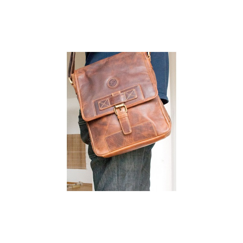 Velká pánská taška Pedro z pevné kůže s popruhem přes rameno. Rozměr 26 x 30 cm. Hloubka podle plnnosti 8-11 cm.