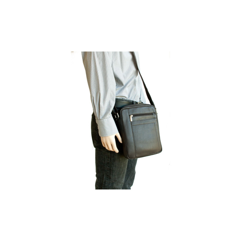 Střední pánská taška z měkké černé kůže s popruhem přes rameno. Rozměr 16 x...