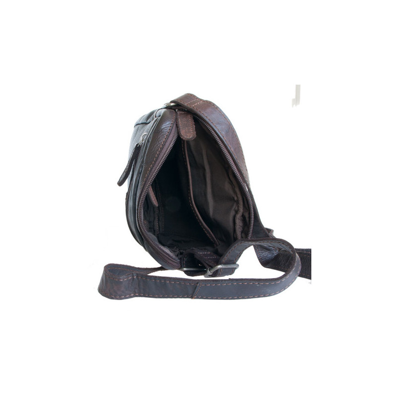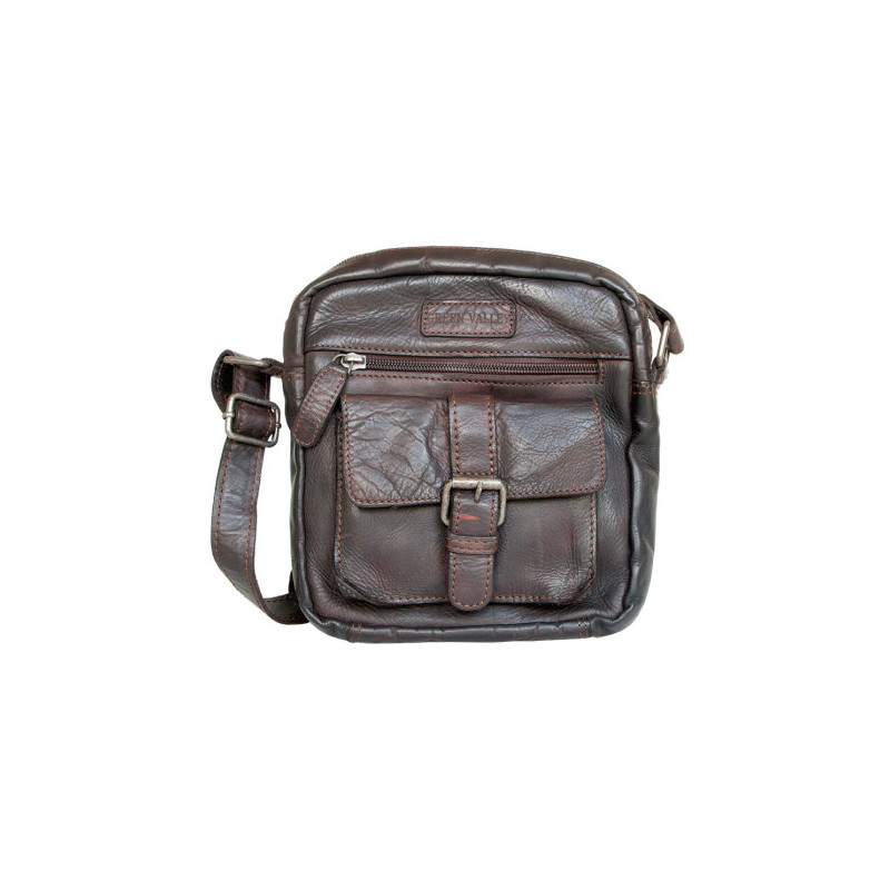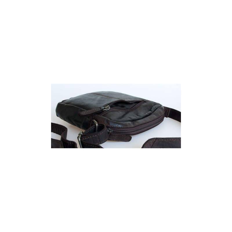 Středně velká pánská taška Green Valley z měkké prané tmavě hnědé kůže s popruhem přes rameno. Rozbalená. Rozměr 19 x 21 cm. Hloubka podle plnosti 4-6 cm.