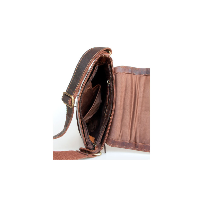 Větší pánská taška Pedro z pevné kůže s popruhem přes rameno ROZBALENÁ....