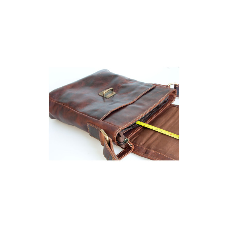 Velká pánská taška z pevné kůže s popruhem přes rameno bez značek a nápisů....