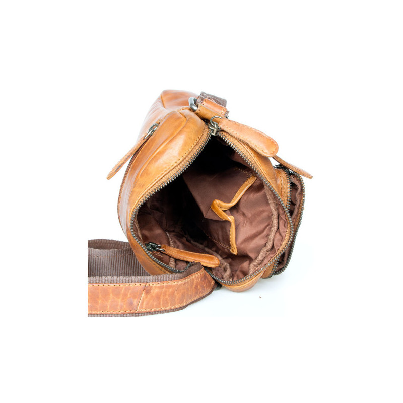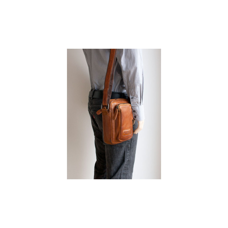 Menší pánská taška Green Valley z prané světle hnědé hovězí kůže s popruhem...