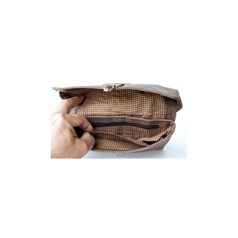 Malá pánská taška Green Valley z hnědé kůže s látkovou podšívkou, s poutkem...