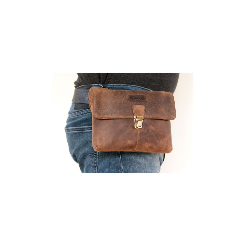 Malá pánská taška Green Valley ze světle hnědé kůže s poutkem za pas i...