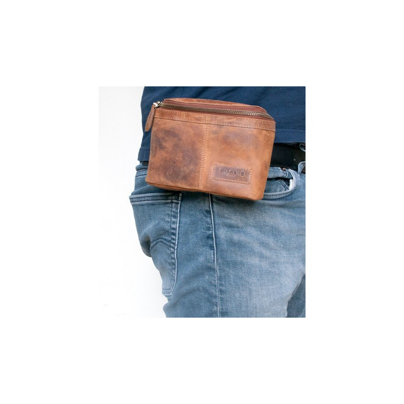 Malá pánská taška Lozano ze světle hnědé kůže s poutkem za pas i popruhem...