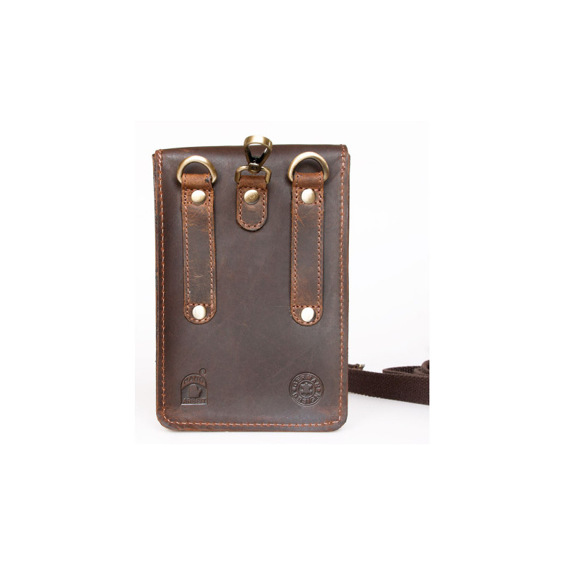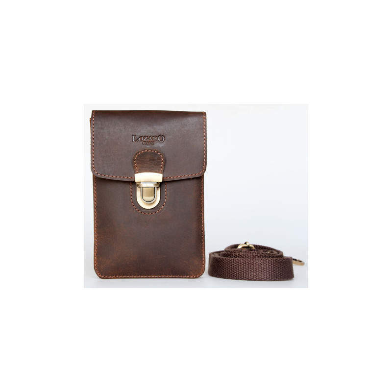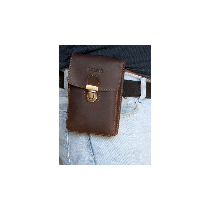 Malá kožená taštička Lozano na pásek nebo popruh z pevné kůže s látkovou podšívkou. Rozměry 11,5 x 17 x 3 cm.
