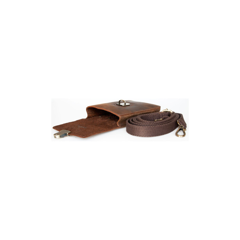 Malá kožená taštička Bullburry na pásek nebo popruh z pevné kůže s látkovou...