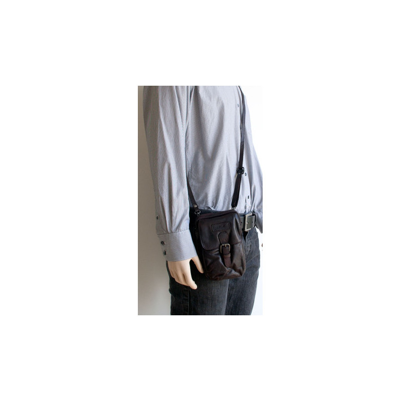Malá pánská taška Green Valley z prané olejované měkké kůže s poutkem za pas a popruhem přes rameno. Rozměr 13 x 19 cm. Hloubka podle plnosti 5 - 9 cm.