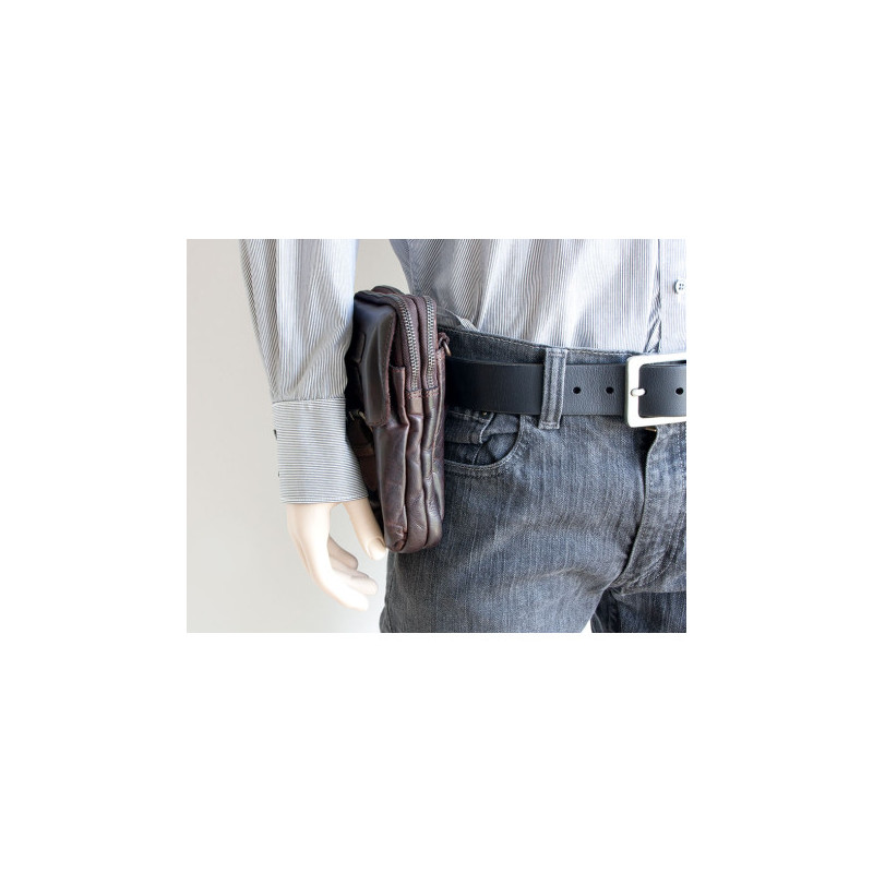 Kožená taštička na pásek nebo přes rameno z pevné kůže bez značek a nápisů s...