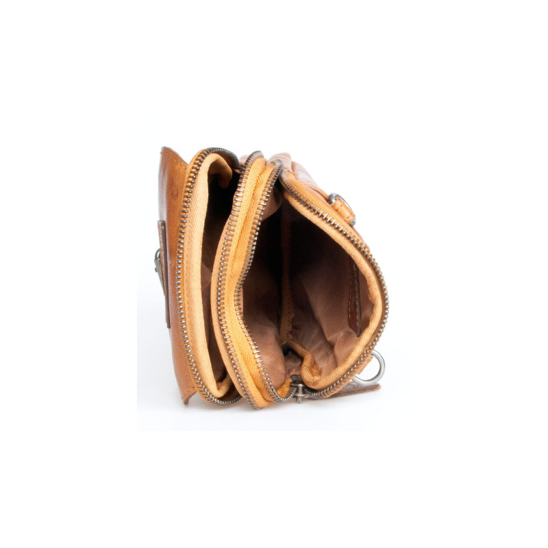 Malá pánská taška Lozano ze světle hnědé kůže s poutkem za pas i popruhem...