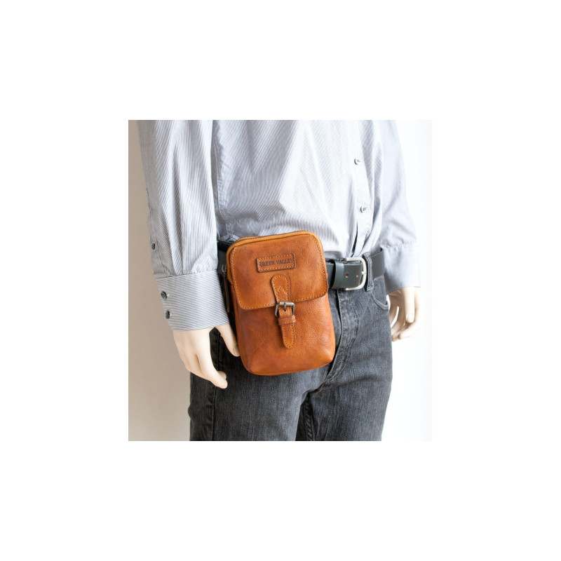 Malá pánská taška Green Valley ze světle hnědé kůže s poutkem za pas i...