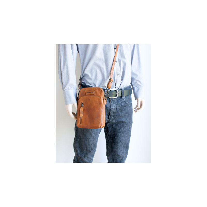 Malá pánská taška Green Valley ze světle hnědé kůže s poutkem za pas i...