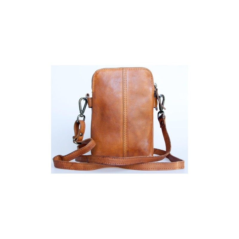 Kožená taštička na pásek nebo přes rameno z pevné kůže bez značek a nápisů s...