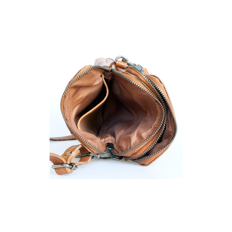 Malá pánská taška Green Valley ze světle hnědé kůže s poutkem za pas i popruhem přes rameno ROZBALENÁ . Rozměr 14 x 21 cm. Hloubka podle plnosti 4 - 8 cm.