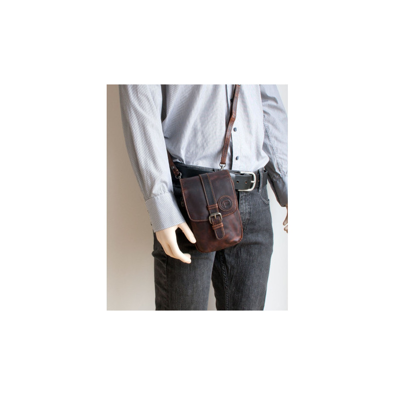 Malá pánská taška Green Valley ze světle hnědé kůže s poutkem za pas i...