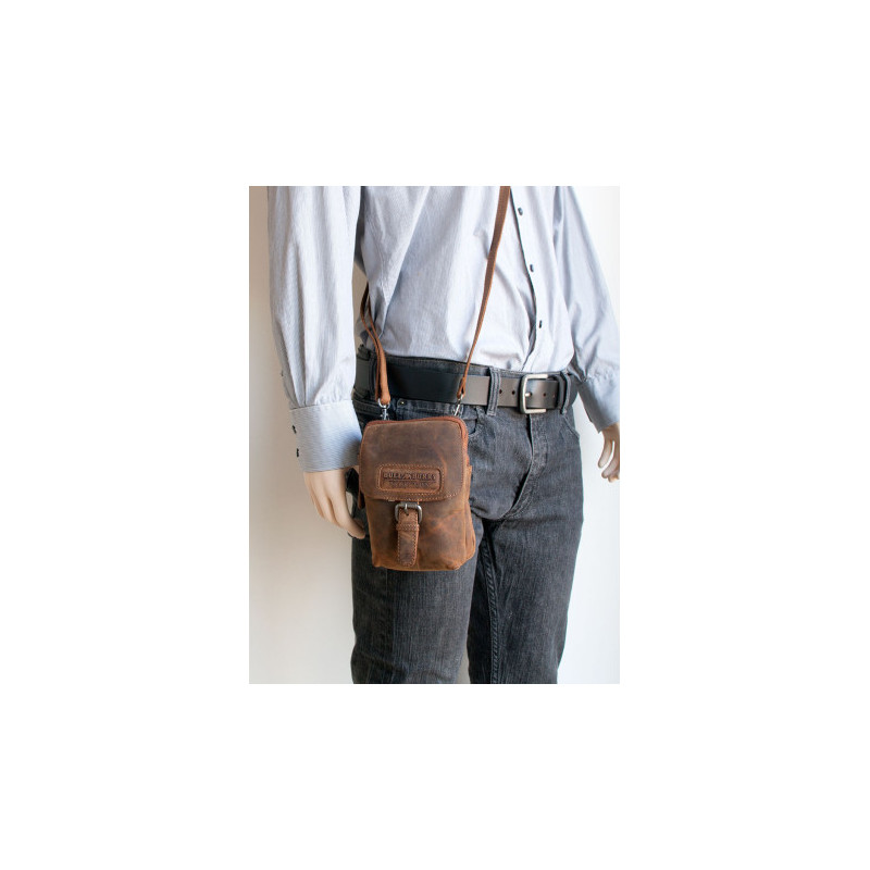Prostorná kožená taštička Bull Burry na pásek nebo přes rameno z pevné kůže s...