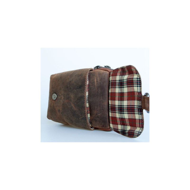 Malá kožená taštička Bullburry na pásek nebo popruh z pevné kůže s látkovou...