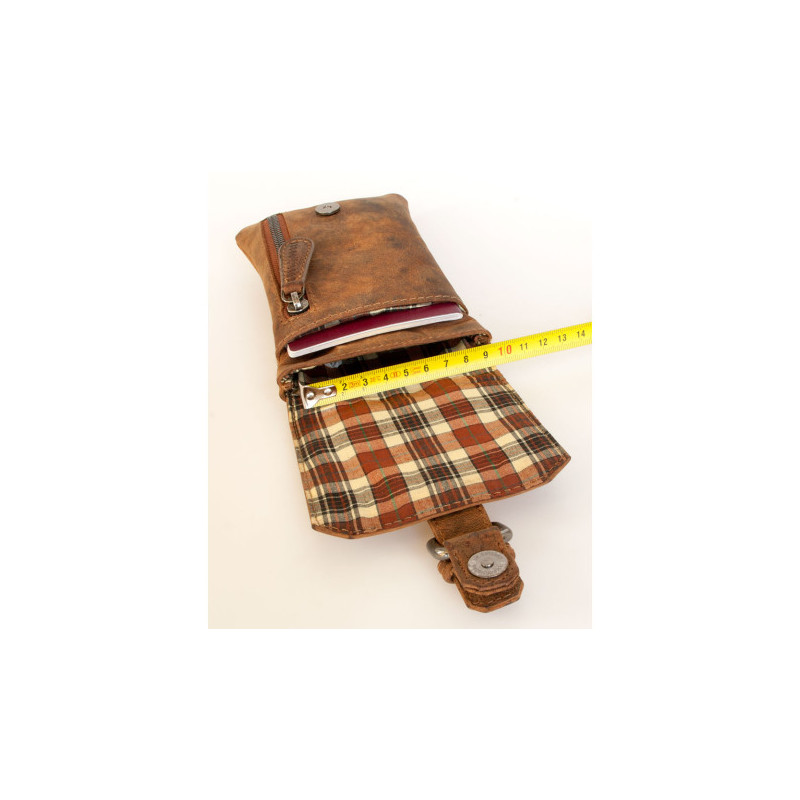 Malá kožená taštička Bullburry na pásek nebo popruh z pevné kůže s látkovou...