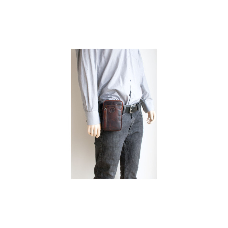 Tmavě hnědá kožená taštička Pedro na pásek nebo...
