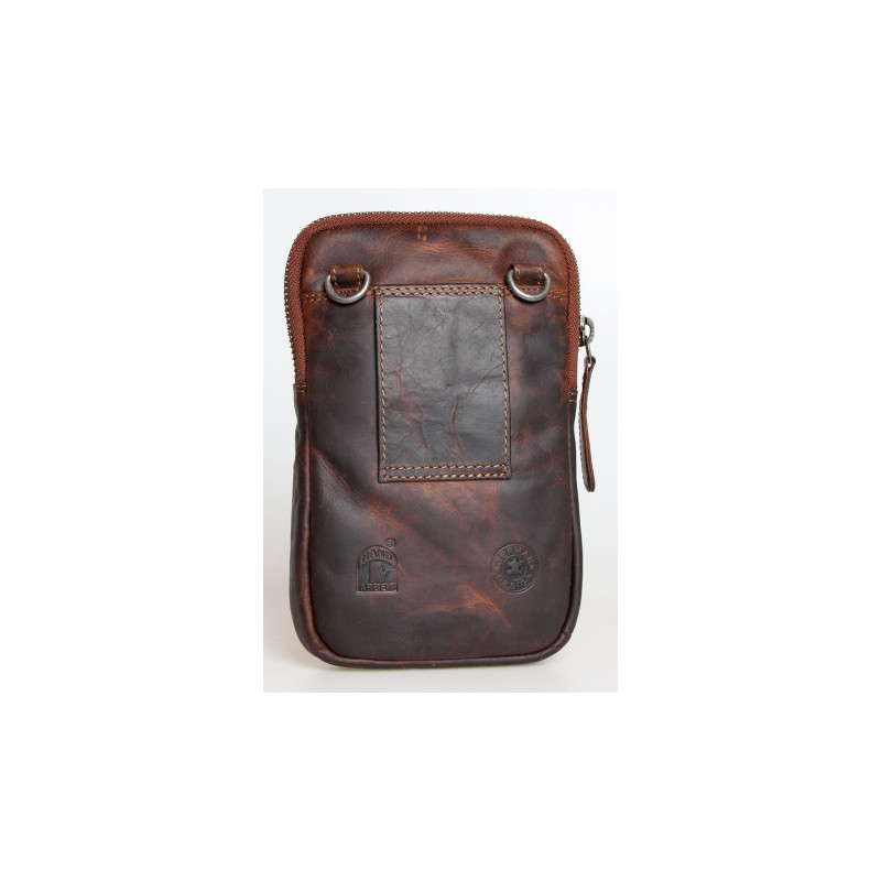 Malá kožená taštička Bullburry na pásek nebo popruh z pevné kůže s látkovou...