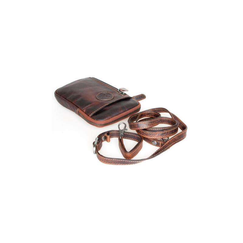 Kožená taštička na pásek nebo přes rameno z pevné kůže bez značek a nápisů s...